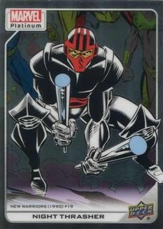 The Night Thrasher 2023 Upper Deck Marvel Platinum #196 Base card is 1 of 30 Night Thrasher's card variations in the 2023 Upper Deck Marvel Platinum set being tracked by Sports Card Investor, including Black Rainbow, Blue Rainbow, Blue Surge, Purple Rainbow, and Rainbow.