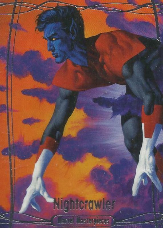 This card is 1 of 3 Nightcrawler's card variations in the 2016 Upper Deck Marvel Masterpieces set being tracked by Sports Card Investor, including Epic Purple Foil /199, and Orange Foil /99.