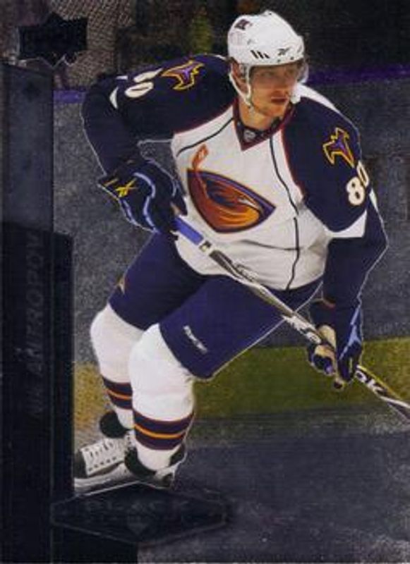 The Nik Antropov 2010 Upper Deck Black Diamond #20 Base card is 1 of 5 Nik Antropov's card variations in the 2010 Upper Deck Black Diamond set being tracked by Sports Card Investor, including Ruby /100, Gold /10, Platinum /1, and 2010 Upper Deck Ice /1999.