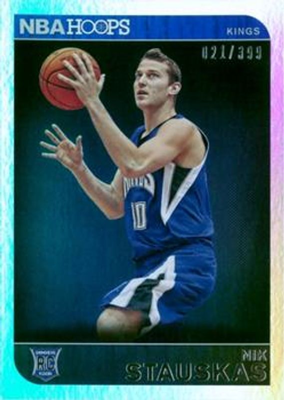 The Nik Stauskas 2014 Hoops #268 Silver /399 Rookie card is 1 of 18 Nik Stauskas' card variations in the 2014 Hoops set being tracked by Sports Card Investor, including Base, Gold, Green, Red Back, and Blue /349.