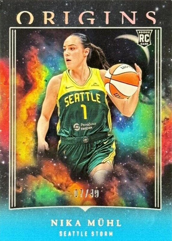 This card is 1 of 37 Nika Muhl's card variations in the 2024 Origins WNBA set being tracked by Sports Card Investor, including Base, Red /99, Blue /75, Swirl /(SSP), and Purple /25.