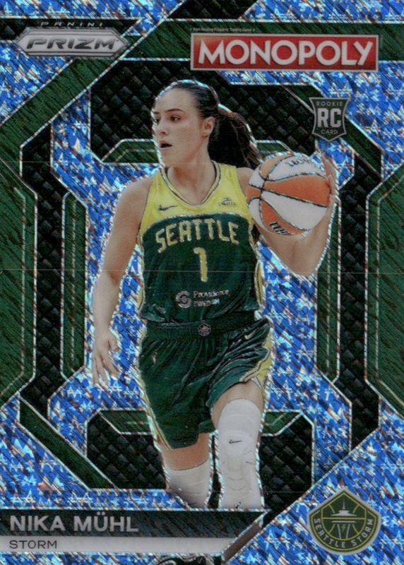 The Nika Muhl 2024 Prizm Monopoly WNBA #WNBA26 Insert - Blue Millionaire Shimmer /10 Rookie card in Raw condition has not changed in price in the last 30 days and was last sold for $60.00 .