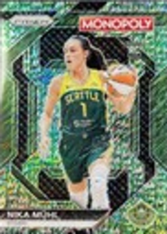 The Nika Muhl 2024 Prizm Monopoly WNBA #WNBA26 Insert - Green Millionaire Shimmer /20 Rookie card in Raw condition has not changed in price in the last 30 days and was last sold for $50.00 .
