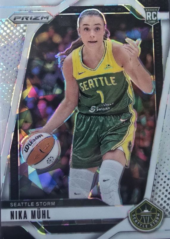 This card is 1 of 113 Nika Muhl's card variations in the 2024 Prizm WNBA set being tracked by Sports Card Investor, including #75 Base, #146 Base, #146 Rookie Variation, #146 Blue Velocity, and #75 Blue Velocity.