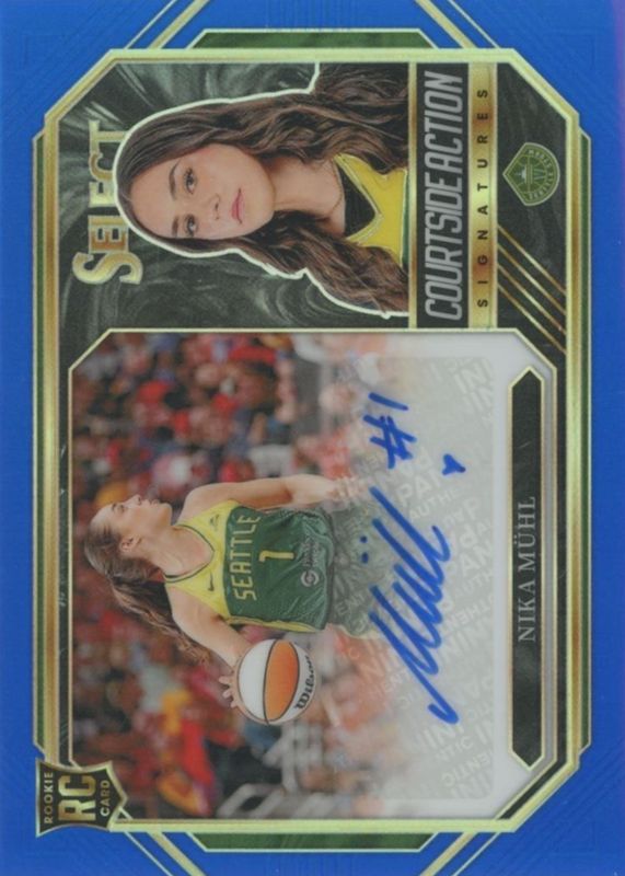 The Nika Muhl 2024 Select WNBA #CSA-NM Courtside Action Signatures - Blue /49 Rookie card in Raw condition has not changed in price in the last 30 days and was last sold for $102.50 .