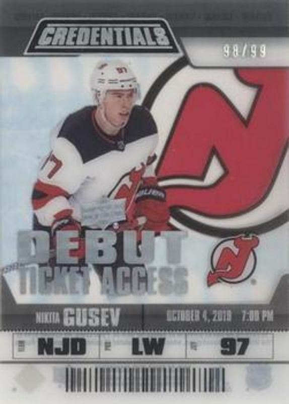 Nikita Gusev 2019 Upper Deck Credentials #RTA-23 Debut Ticket Access Acetate /299 Rookie RAW