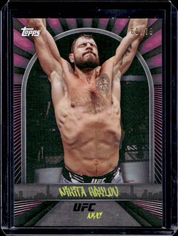 The Nikita Krylov 2024 Topps NYC UFC #13 Pink /75 card is 1 of 26 Nikita Krylov's card variations in the 2024 Topps NYC UFC set being tracked by Sports Card Investor, including Base, Green /99, Blue /49, Purple /25, and Red /10.