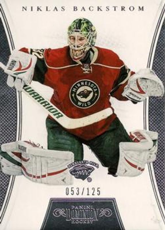 The Niklas Backstrom 2012 Prime #32 2012 Panini Dominion /99 card is 1 of 18 Niklas Backstrom's card variations in the 2012 Prime set being tracked by Sports Card Investor, including Base /249, HoloSilver /50, HoloGold /25, Black /3, and Colors Logo /28.