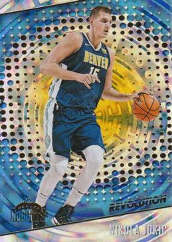 The Nikola Jokic 2017 Revolution #98 Fractal card is 1 of 14 Nikola Jokic's card variations in the 2017 Revolution set being tracked by Sports Card Investor, including Base, Astro, Groove, Impact, and Cosmic /100.