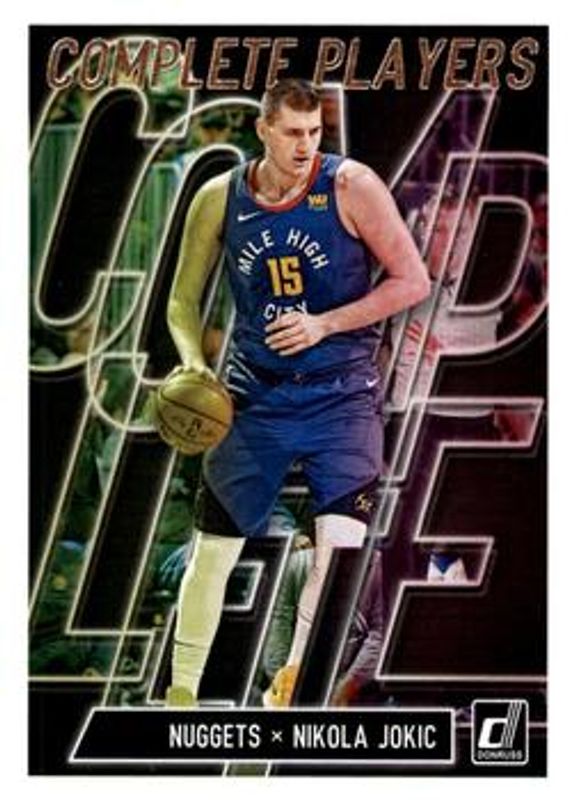 The Nikola Jokic 2019 Donruss #10 Complete Players card is 1 of 43 Nikola Jokic's card variations in the 2019 Donruss set being tracked by Sports Card Investor, including Base, Green Flood, Green & Yellow Laser, Orange Laser, and Press Proof Silver /349.