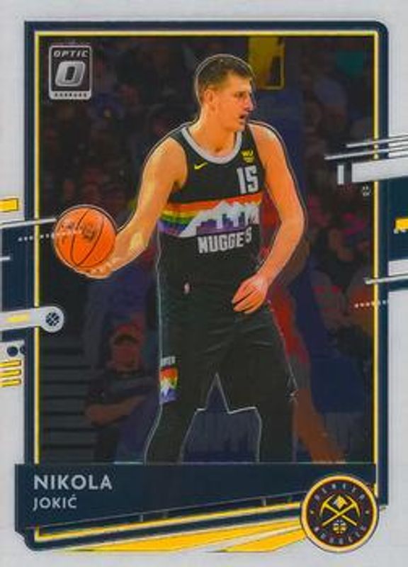 The Nikola Jokic 2020 Optic #96 Base card is 1 of 86 Nikola Jokic's card variations in the 2020 Optic set being tracked by Sports Card Investor, including Blue Pulsar, Blue Velocity, Checkerboard, Choice Red & Green, and Fanatics Box Set.