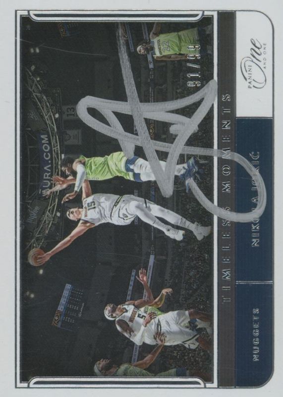The Nikola Jokic 2021 One and One #TM-NJK Timeless Moments Autographs /99 card in Raw condition has not changed in price in the last 30 days and was last sold for $800.00 .