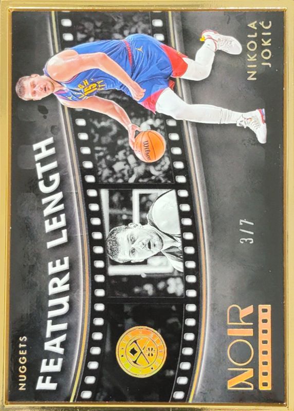 The Nikola Jokic 2023 Noir #258 Feature Length - Holo Gold FOTL /7 card in Raw condition has not changed in price in the last 30 days and was last sold for $110.00 .