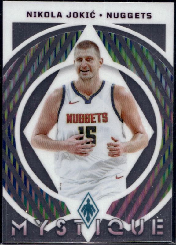 The Nikola Jokic 2023 Phoenix #4 Mystique card is 1 of 199 Nikola Jokic's card variations in the 2023 Phoenix set being tracked by Sports Card Investor, including Base, Blue Ice, Color Burst, Dream Weaver, and Hieroglyphs.
