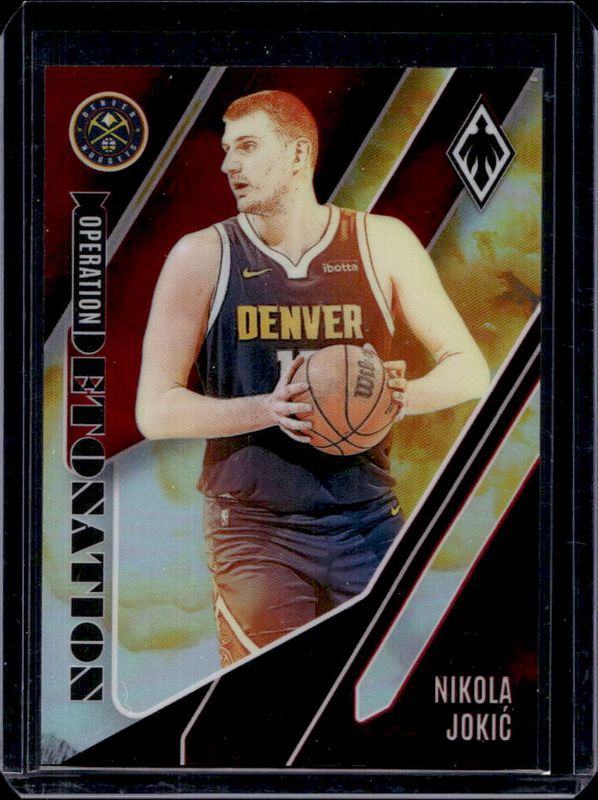 The Nikola Jokic 2023 Phoenix #25 Operation Detonation - Red /125 card is 1 of 199 Nikola Jokic's card variations in the 2023 Phoenix set being tracked by Sports Card Investor, including Base, Blue Ice, Color Burst, Dream Weaver, and Hieroglyphs.