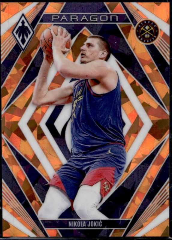 The Nikola Jokic 2023 Phoenix #6 Paragon - Orange Ice /249 card is 1 of 199 Nikola Jokic's card variations in the 2023 Phoenix set being tracked by Sports Card Investor, including Base, Blue Ice, Color Burst, Dream Weaver, and Hieroglyphs.