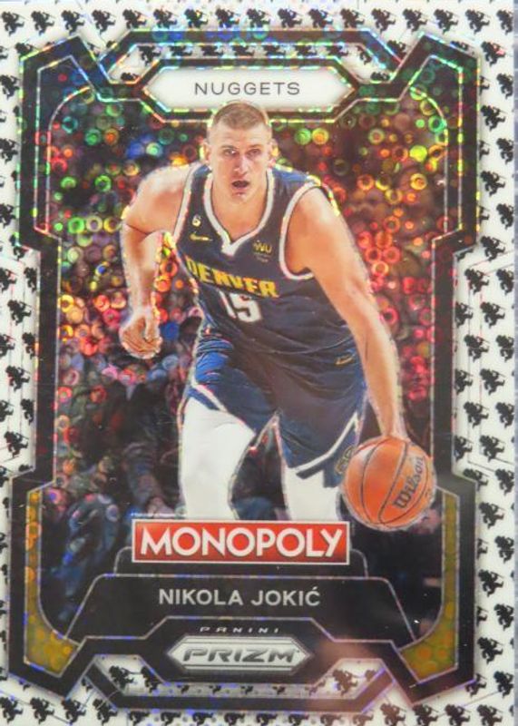 The Nikola Jokic 2023 Prizm Monopoly #1 Monopoly Man Black & White card in Raw condition has not changed in price in the last 30 days and was last sold for $2.99 .
