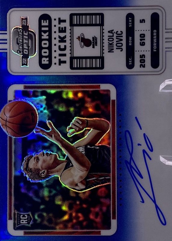 Nikola Jovic 2022-23 Contenders Optic Rookie Ticket BLUE VARIATION AUTO /49 RC