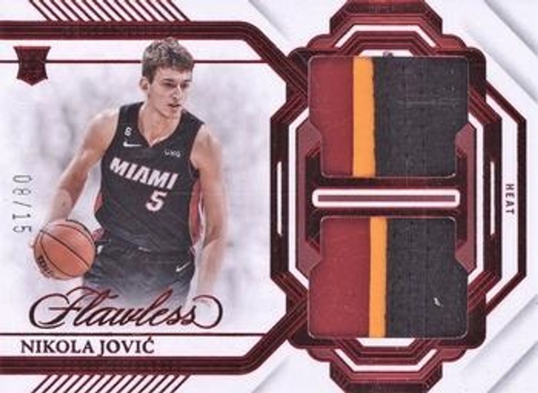 Nikola Jovic 2022 Flawless #DPH-NIK Dual Patches - Ruby /15 Rookie RAW Price Guide