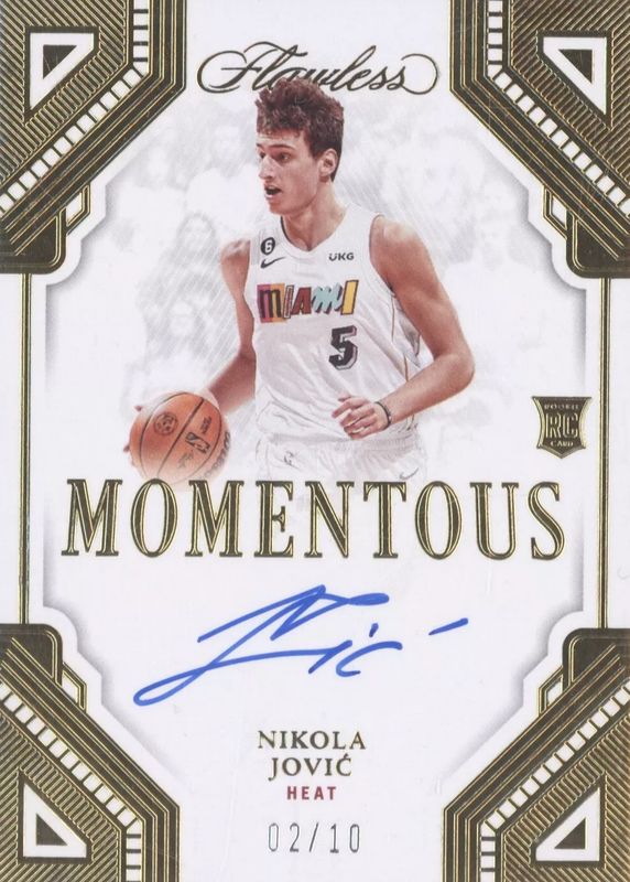 Auctions Ending Soon for Nikola Jovic 2022 Flawless #MA-NKJ Momentous Autographs - Gold /10 Rookie RAW