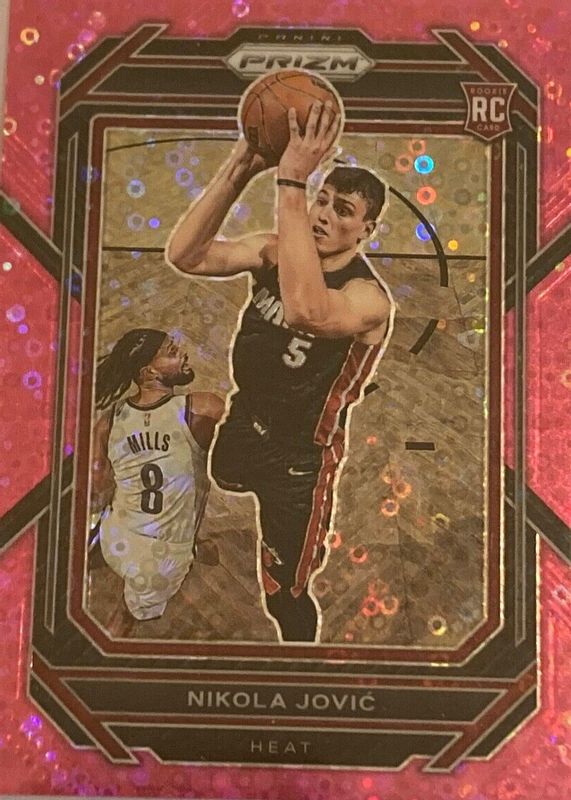 22-23 Panini Prizm Nikola Jovic Fast Break Pink Disco Prizm /50 #236 Rookie Heat