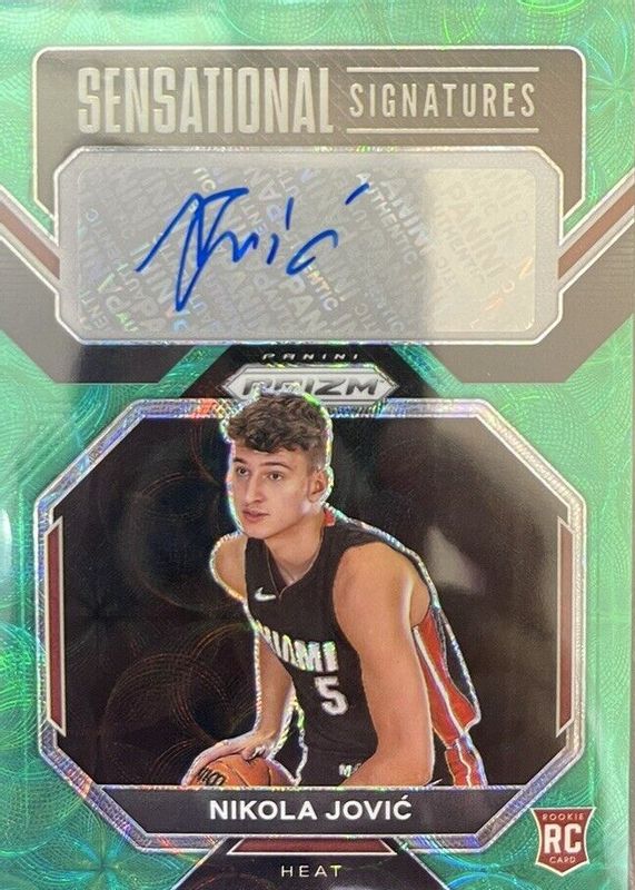 Auctions Ending Soon for Nikola Jovic 2022 Prizm #SS-NJ Sensational Signatures - Choice Green /8 Rookie RAW