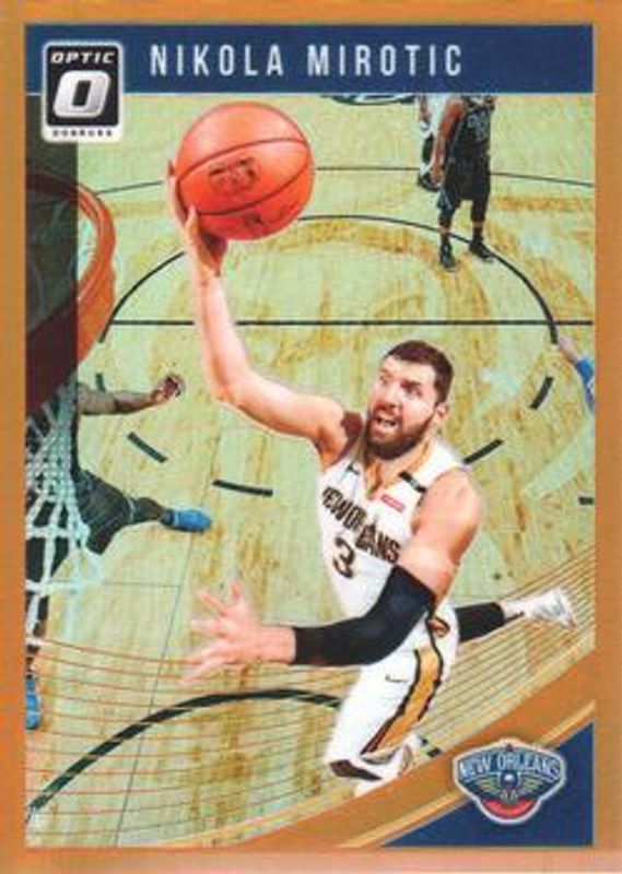 The Nikola Mirotic 2018 Optic #27 Orange /199 card is 1 of 36 Nikola Mirotic's card variations in the 2018 Optic set being tracked by Sports Card Investor, including Base, Fast Break, Holo, Purple, and Premium Box Set /249.
