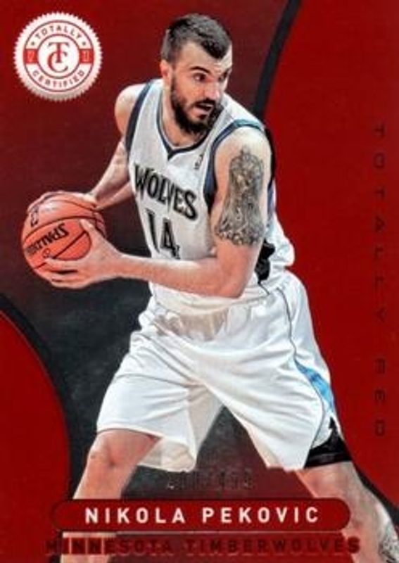 The Nikola Pekovic 2012 Totally Certified #263 Totally Red /499 card is 1 of 10 Nikola Pekovic's card variations in the 2012 Totally Certified set being tracked by Sports Card Investor, including Base, Totally Blue /299, Totally Gold /25, Totally Green /5, and Printing Plate Black /1.