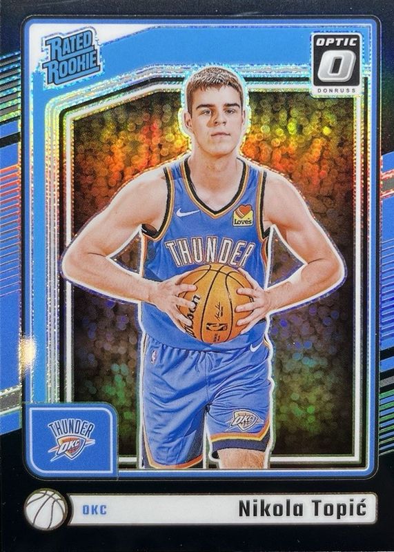 This card is 1 of 77 Nikola Topic's card variations in the 2024 Optic set being tracked by Sports Card Investor, including Base, Blue Velocity, Checkerboard, Choice, and Fast Break.
