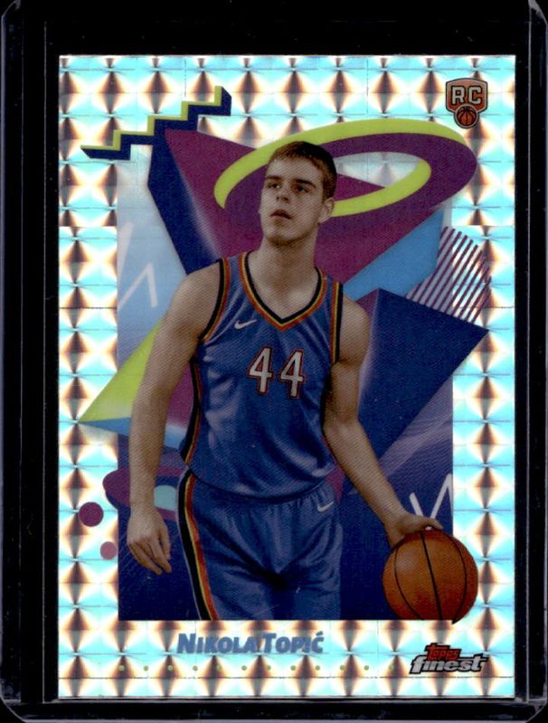The Nikola Topic 2024 Topps Finest #269 Base Rare - Geometric Refractor Rookie card is 1 of 116 Nikola Topic's card variations in the 2024 Topps Finest set being tracked by Sports Card Investor, including Arrivals, Arrivals - Geometric Refractor, Arrivals - Refractor, Arrivals - X-Fractor, and Base Common.