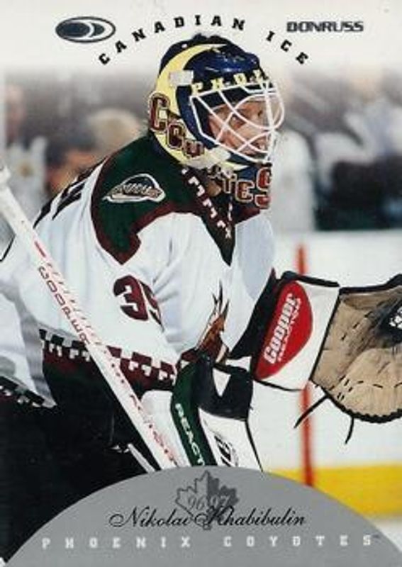 The Nikolai Khabibulin 1996 Donruss Canadian Ice #95 Base card is 1 of 3 Nikolai Khabibulin's card variations in the 1996 Donruss Canadian Ice set being tracked by Sports Card Investor, including Canadian Gold Press Proofs, and Canadian Red Press Proofs /75.