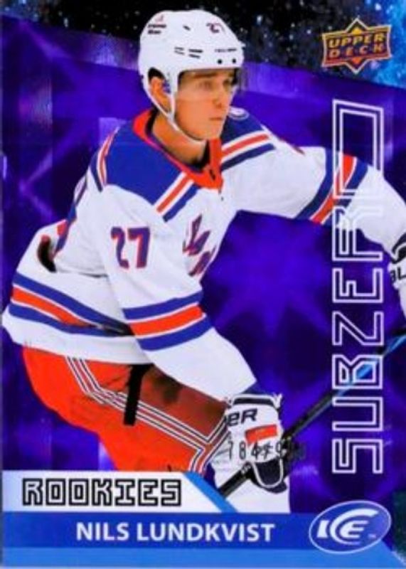 The Nils Lundkvist 2021 Upper Deck Ice #SZ-39 Sub Zero /999 Rookie card is 1 of 39 Nils Lundkvist's card variations in the 2021 Upper Deck Ice set being tracked by Sports Card Investor, including #149 Base /999, #238 Base /999, #149 Ice Blue, #149 Jersey, and #149 Lavender.