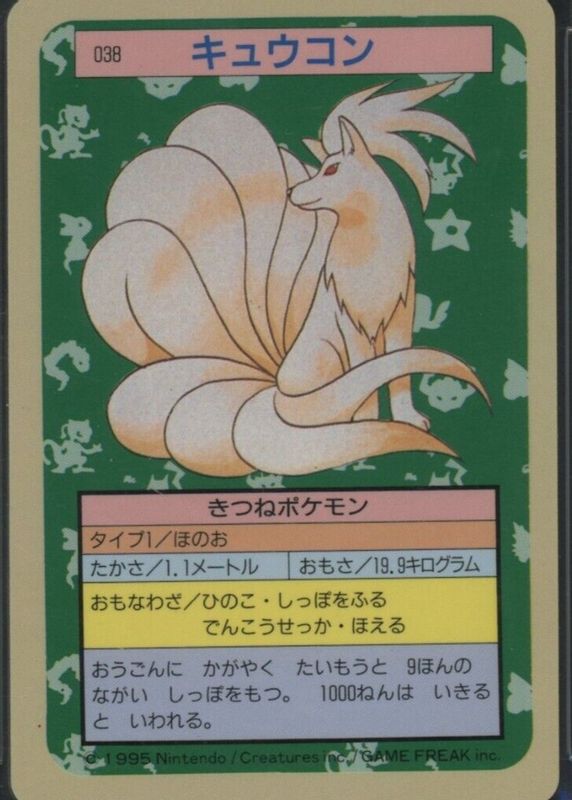 This card is 1 of 2 Ninetales' card variations in the 1997 Japanese Topsun set being tracked by Sports Card Investor, including Green Back (2nd Edition).