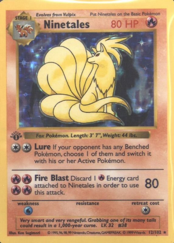 Ninetales 1999 Pokemon Game #12 1st Edition Holo (Thick Stamp) RAW TCG (LIGHTLY PLAYED) Price Guide