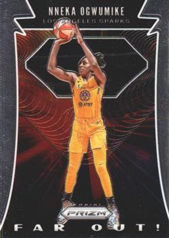 The Nneka Ogwumike 2020 Prizm WNBA #3 Far Out card is 1 of 66 Nneka Ogwumike's card variations in the 2020 Prizm WNBA set being tracked by Sports Card Investor, including Base, Green, Green Ice, Hyper, and Ice.