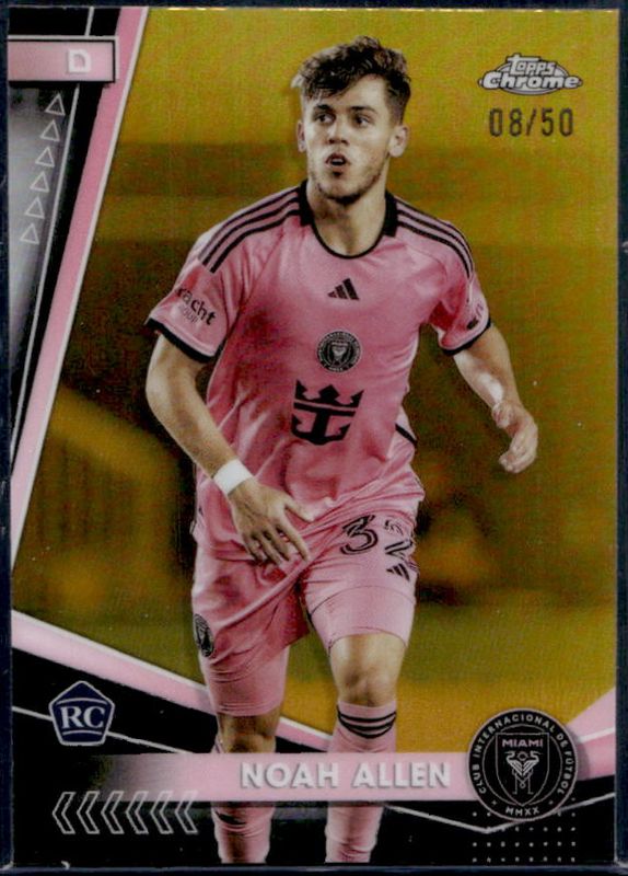 The Noah Allen 2024 Topps Chrome MLS #154 Gold Refractor /50 card is 1 of 63 Noah Allen's card variations in the 2024 Topps Chrome MLS set being tracked by Sports Card Investor, including #154 Base, #27 Base, #27 Aqua Lava Refractor, #154 Aqua Lava Refractor, and #154 Gold Lava Refractor.