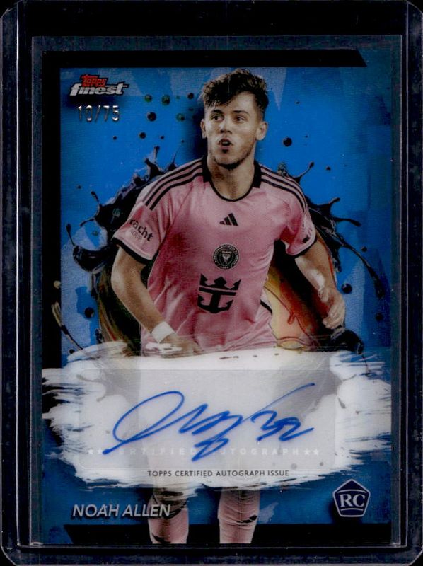 The Noah Allen 2024 Topps Finest MLS #BA-NA Autographs - Blue Refractor /75 card is 1 of 18 Noah Allen's card variations in the 2024 Topps Finest MLS set being tracked by Sports Card Investor, including Base, Aqua Refractor, Black Refractor, Checkerboard Refractor, and Gold Refractor.