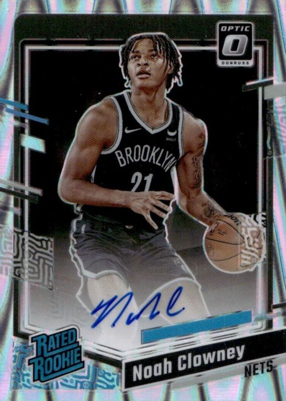 This card is 1 of 80 Noah Clowney's card variations in the 2023 Optic set being tracked by Sports Card Investor, including Base, Blue Velocity, Checkerboard, Choice Red & Green, and Fast Break.