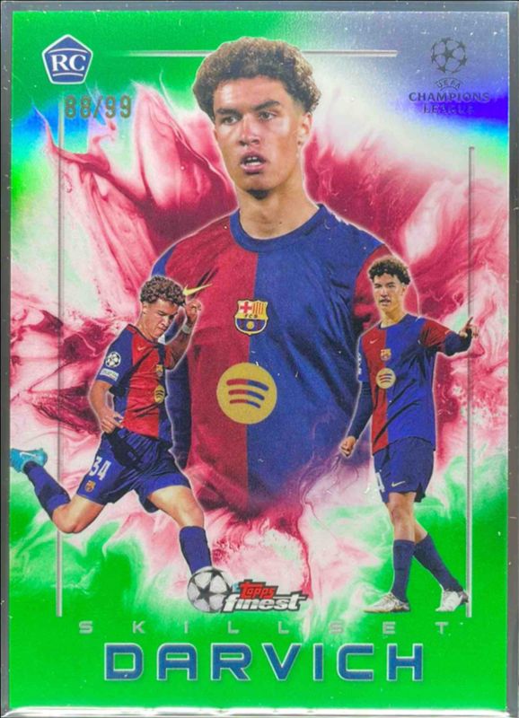 The Noah Darvich 2024 Topps Finest UEFA Club Competitions #SK-10 Finest Skillset - Green Refractor /99 card is 1 of 52 Noah Darvich's card variations in the 2024 Topps Finest UEFA Club Competitions set being tracked by Sports Card Investor, including Base, Refractor, Purple Refractor /299, Sky Blue Refractor /275, and Pink RayWave Refractor /250.
