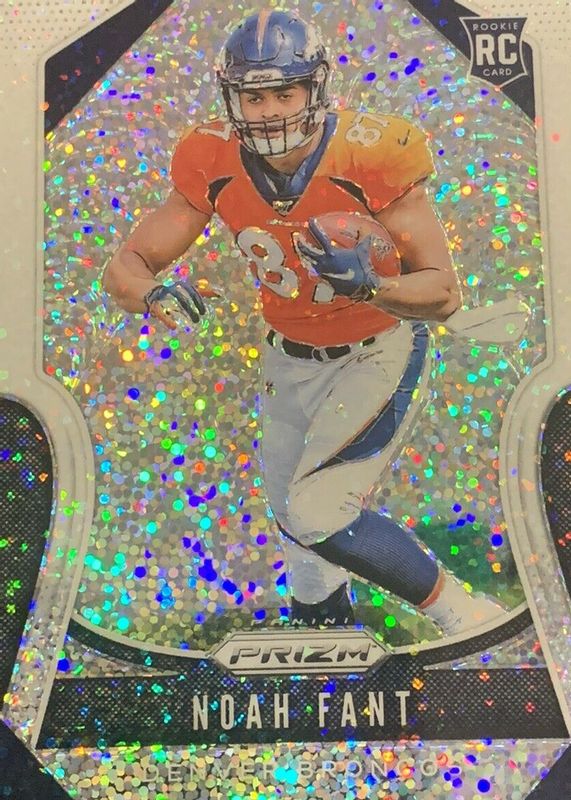 This card is 1 of 44 Noah Fant's card variations in the 2019 Prizm set being tracked by Sports Card Investor, including Base, Disco, Green, Lazer, and Neon Green Pulsar.