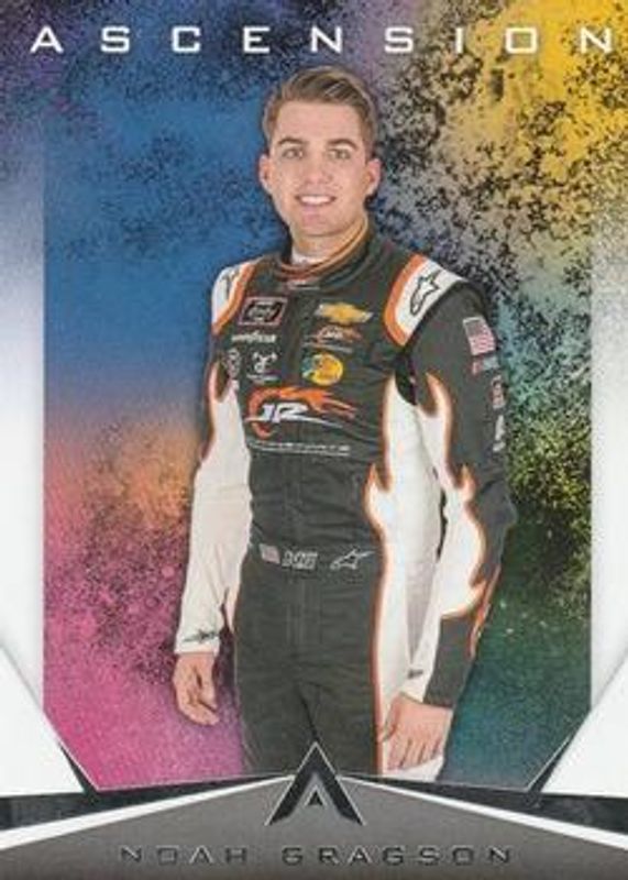 The Noah Gragson 2020 Chronicles NASCAR #2 Ascension card is 1 of 13 Noah Gragson's card variations in the 2020 Chronicles NASCAR set being tracked by Sports Card Investor, including Spectra, Ascension Autographs /199, Ascension Blue /199, Ascension Red /99, and Spectra Neon Green Kaleidoscope /49.