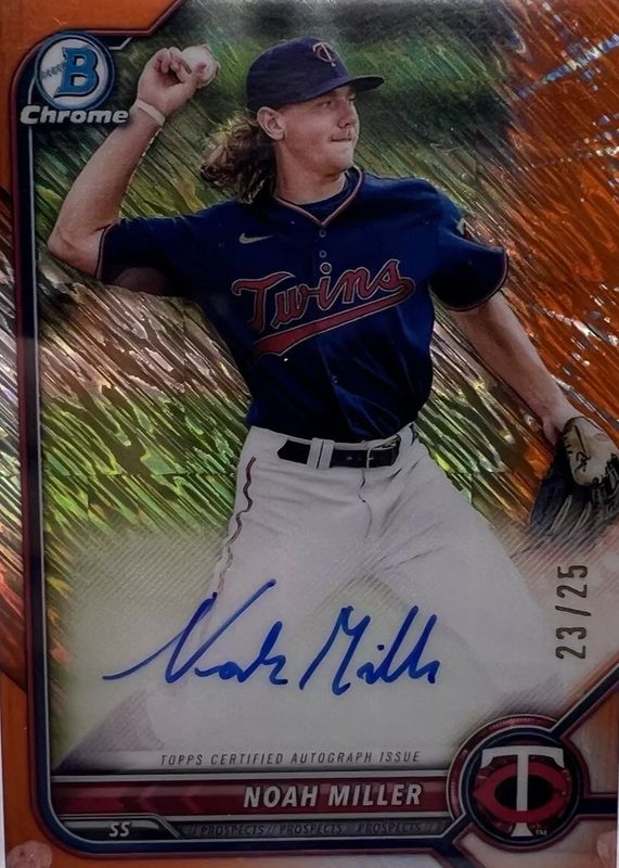 Auctions Ending Soon for Noah Miller 2022 Bowman Chrome #CPA-NM Prospect Auto - Orange Shimmer Refractor /25 RAW
