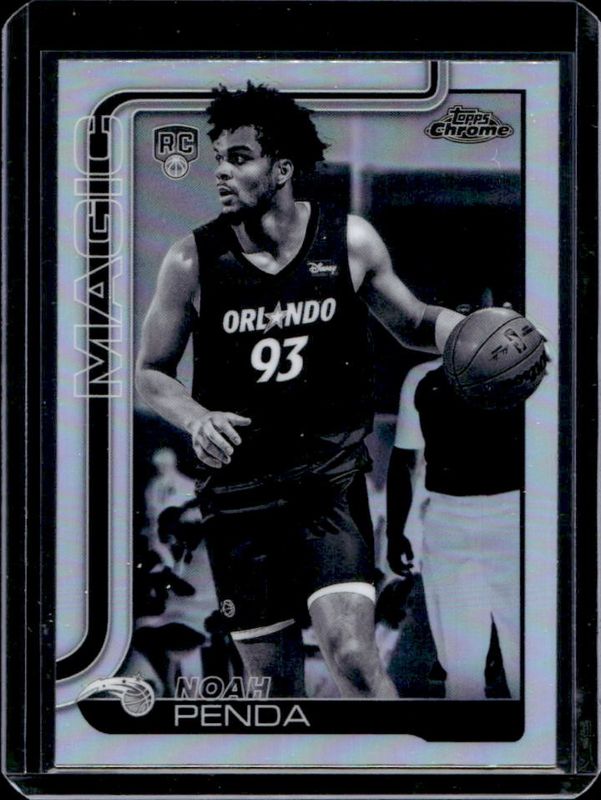 The Noah Penda 2025 Topps Chrome #282 Negative Refractor Rookie card is 1 of 147 Noah Penda's card variations in the 2025 Topps Chrome set being tracked by Sports Card Investor, including Base, Basketball Refractor, Box Set Refractor, Lightboard Logo Refractor, and Prism Refractor.