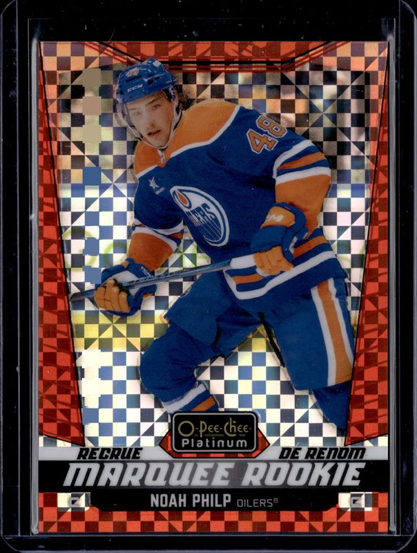 The Noah Philp 2024 O-Pee-Chee Platinum #295 Orange Checkers /25 Rookie card is 1 of 15 Noah Philp's card variations in the 2024 O-Pee-Chee Platinum set being tracked by Sports Card Investor, including Base, Neon Yellow Surge, Pink Magma, Rainbow, and Sunset.