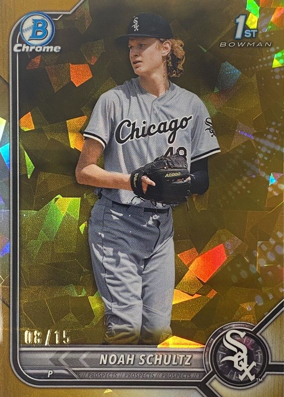 Noah Schultz 2022 Bowman Draft Sapphire Edition #BDC-56 Chrome - Gold /15 (1st) RAW Price Guide