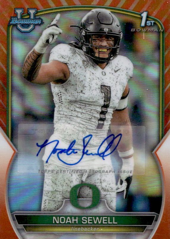 Noah Sewell 2022 1st Bowman U Chrome RARE #/25 TRUE ORANGE REFRACTOR AUTO (RC)