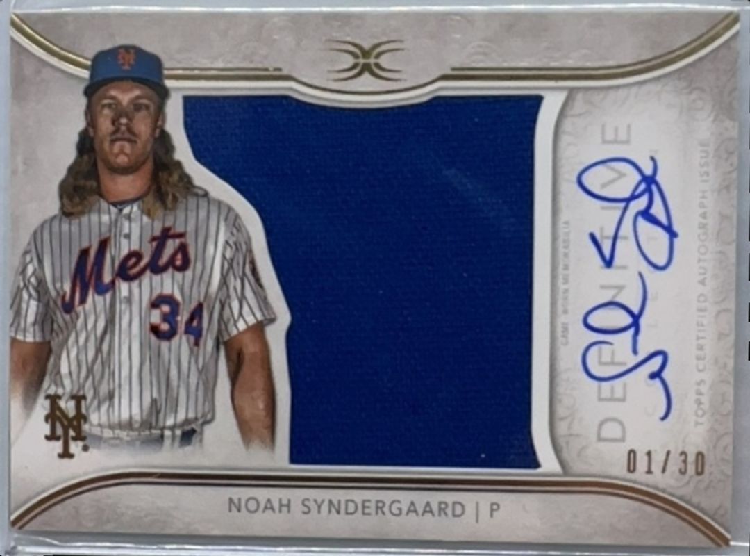 The Noah Syndergaard 2018 Topps Definitive Collection #ARC-NS Base /30 card is 1 of 35 Noah Syndergaard's card variations in the 2018 Topps Definitive Collection set being tracked by Sports Card Investor, including Green /25, Purple /10, Red Button /1, Red Majestic Logo /1, and Red MLB Logo /1.