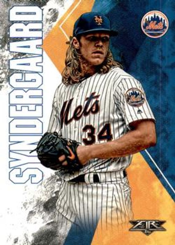 The Noah Syndergaard 2019 Topps Fire #114 Base card is 1 of 22 Noah Syndergaard's card variations in the 2019 Topps Fire set being tracked by Sports Card Investor, including Blue Chip, Flame, Gold Minted, Onyx, and Orange /299.