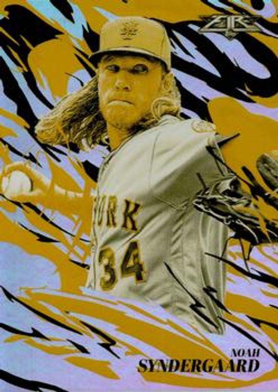 The Noah Syndergaard 2019 Topps Fire #FT-14 Flamethrowers - Gold Minted card is 1 of 22 Noah Syndergaard's card variations in the 2019 Topps Fire set being tracked by Sports Card Investor, including Base, Blue Chip, Flame, Gold Minted, and Onyx.