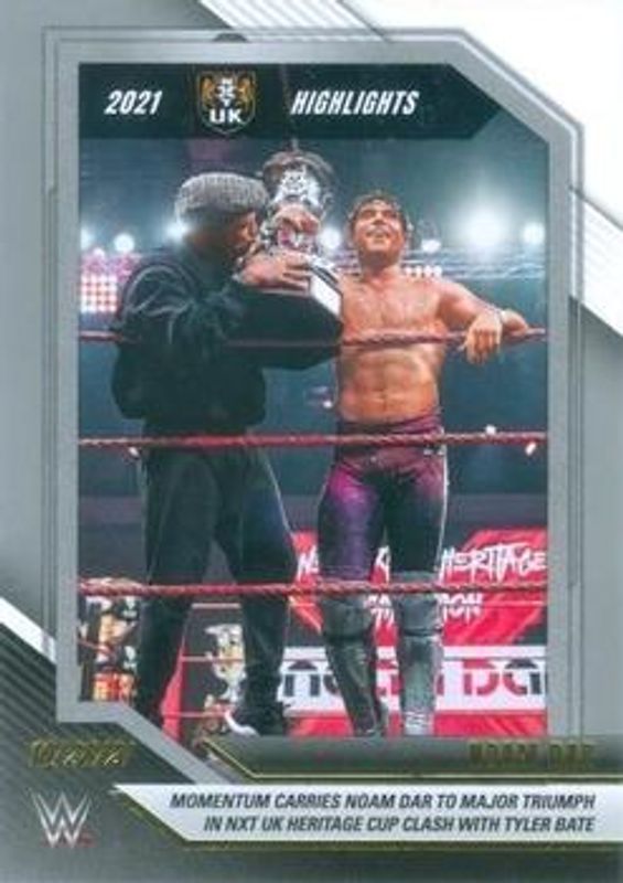 The Noam Dar 2022 Panini WWE NXT #49 2021 NXT Highlights - Silver card is 1 of 33 Noam Dar's card variations in the 2022 Panini WWE NXT set being tracked by Sports Card Investor, including Base, Green, Silver, Red /199, and Blue /149.